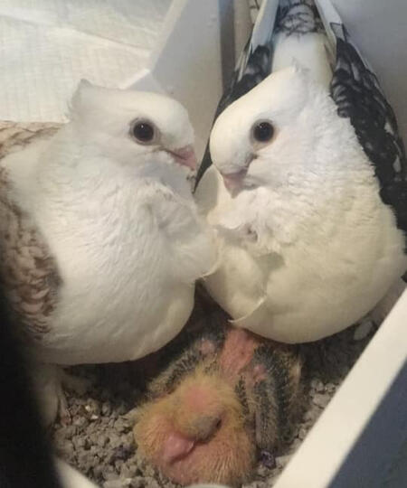 Keepsakes Loft is a small hobby breeder of Classic Old Frill (COF) pigeons located in the GTA area of Ontario, Canada. We are proudly registered with the CPFA, attend events, and look forward to involvement in shows when that becomes possible again. All of our squeaks go home banded and registered, with a guarantee of health and satisfaction.A lifelong love of these sweet, misunderstood birds led us to the purchase of our first pair of COFs, Duke and Duchess, in May of 2020, who had their first clutch in August 2020. We documented the hatching and growth of the babies, Bedwyr and Galahad, and the immense interest that the internet expressed in them led to us considering the prospect of breeding a small, select number of babies as pets.The loft's caretakers are James, and their partner Adrian who handles the photography and social media.