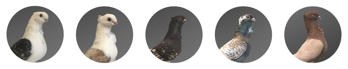 Much information about the origins and history of the breed can be found on the Wikipedia Page and on the website of the National Frill Club.Originally bred for the Sultans of the Ottoman Empire, for centuries the breed was kept away from the common people."The "Hünkari", or as it's known today outside Turkey, "the Oriental Frill" was first imported to England by H. P. Caridia in 1864 from Izmir. It was first exhibited in National Columbarian Society in 1879 in America.The Old Fashioned or Original Hünkari (Oriental Frill) possess less exaggerated features unlike the Oriental Frill of today. They can still feed their own young, called squabs, by regurgitation, because their beaks have not been bred down to such an extremely short and blunt shape as in the new style show birds. There is therefore no need for foster feeders, of another long-beaked breed, such as homers, to feed the Classic Oriental Frill squabs. The old style Hünkari (Oriental Frill) is still a good flyer as it is not bred in larger sizes." (Wikipedia).